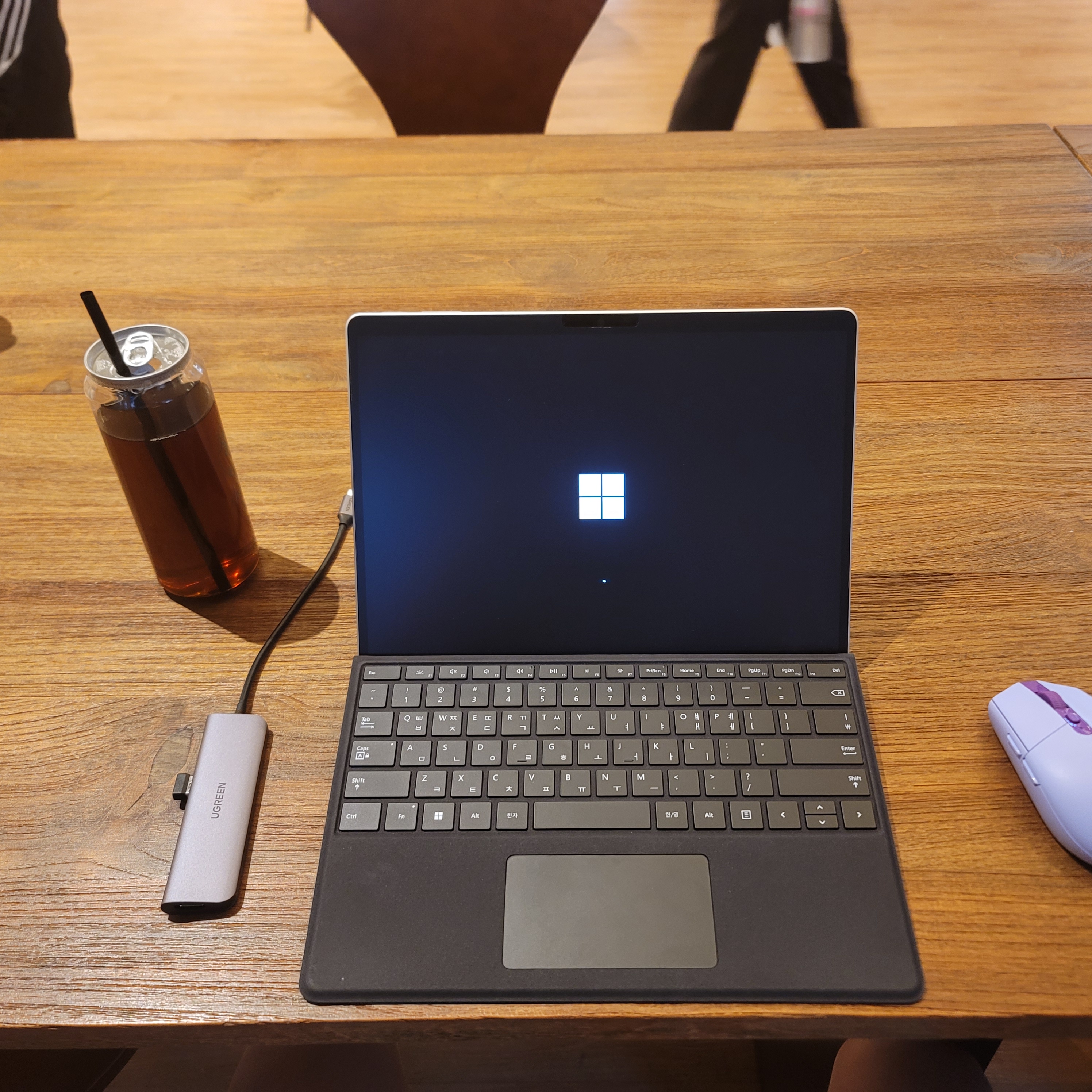 팔랑귀인 저는 사람들 반응이 너무 들쑥날쑥해서 선택이 쉽지는 않았지만 '장난감으로 한번 구매해 보자'라고 생각하면서 서피스프로 9 + 전용 키보드 + 슬림펜 2를 구매했습니다. 이유는 태블릿과 노트북을 나눠서 사용하는데 이걸 합치면 어떤 느낌일까 궁금하더라고요.